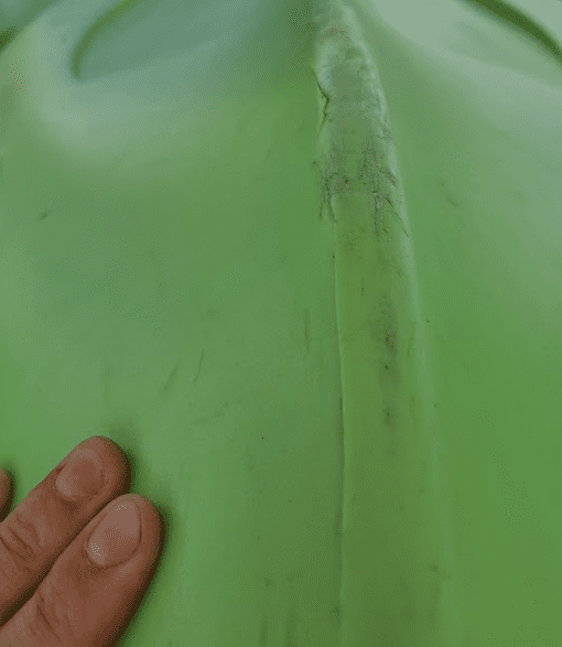 My wife’s kayak was so slow because it was completely full of water! I found a huge crack in it, likely caused by hitting a submerged stump on brittle, sun-damaged plastic. Luckily, we made it back before she sank.